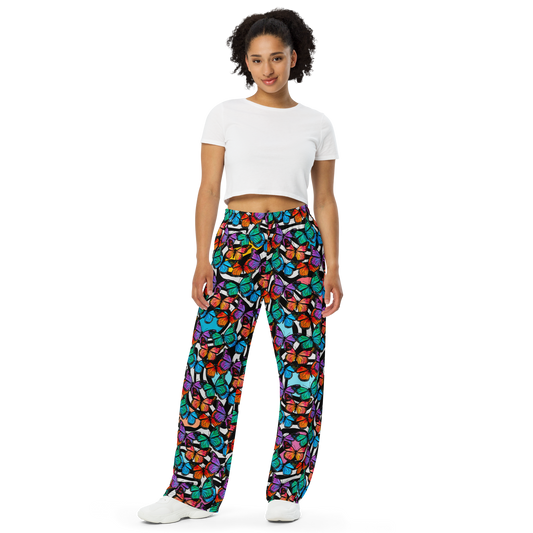 Unisex wide-leg pants (Butterflies - Black & White)
