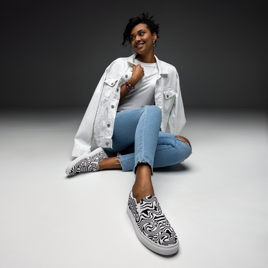Women’s slip-on canvas shoes (Black & White Squiggle)