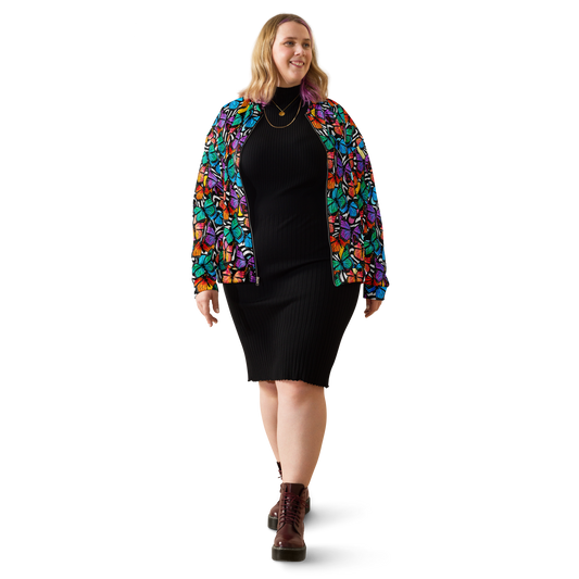 Unisex Bomber Jacket (Butterflies|Black & White)