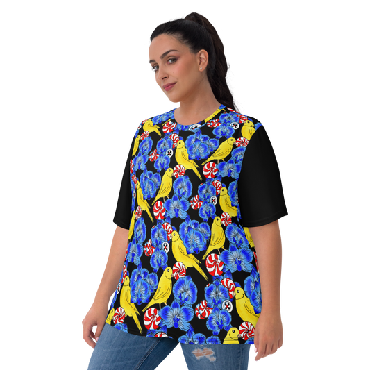 Women's T-shirt (Canaries & Orchids|Black Sleeves)
